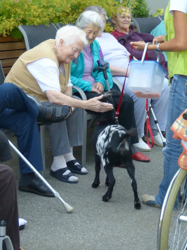 Auch ein einfacher Spaziergang mit einem Hund oder einer Ziege kann das Wohlbefinden von Klientinnen und Klienten spürbar verbessern.