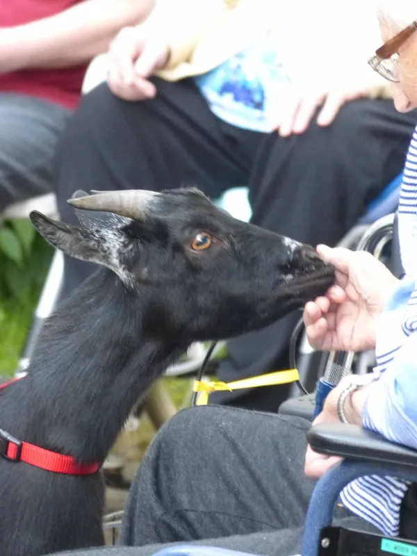 Auch ein einfacher Spaziergang mit einem Hund oder einer Ziege kann das Wohlbefinden von Klientinnen und Klienten spürbar verbessern.